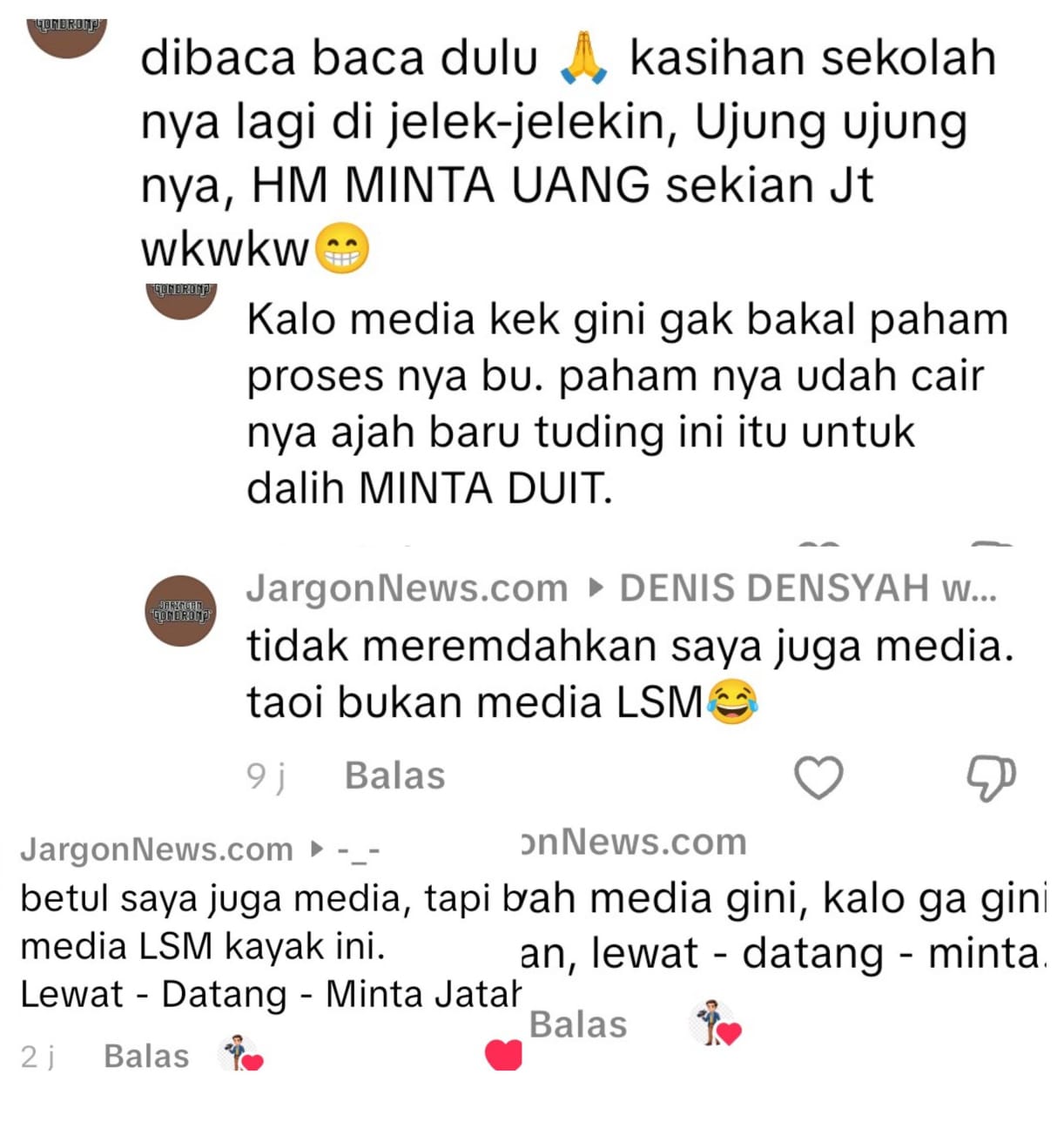 Perlu ditegaskan, setiap jurnalis atau media yang merasa dirugikan oleh suatu pemberitaan memiliki mekanisme resmi, di antaranya hak jawab dan hak koreksi sebagaimana diatur dalam Undang-Undang Nomor 40 Tahun 1999 tentang Pers, bukan justru menyerang secara personal melalui komentar di media sosial.