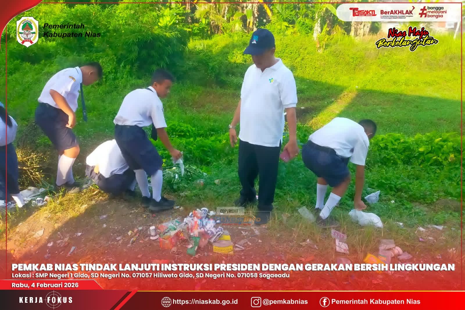 Media Infoxpos.com – Nias – Rabu, 04 Februari 2026, Pemerintah Kabupaten Nias melaksanakan Gerakan Bersih Lingkungan sebagai tindak lanjut atas instruksi Presiden RI Prabowo Subianto dalam Rakornas 2026.