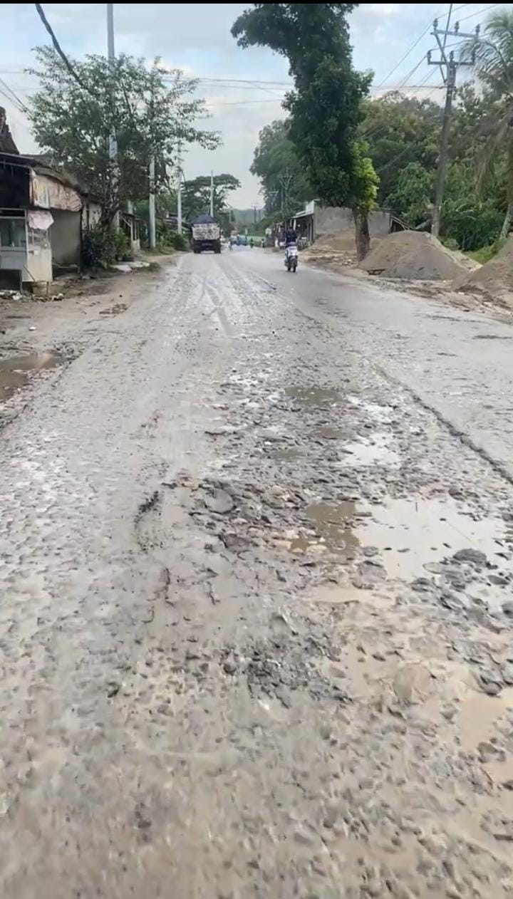 Sungguh Miris liat jalan yang Semkin hancur parah dan berlobang kini belom pernah di perbaiki dan mengakibatkan bolong bolong rusak parah dan sangat menggangu aktivitas mulai timbul masalah karena menimbulkan kemacetan dan keselamatan Apalagi kalo musim hujan sangat becek dan licin, dan kalo kemaru buanyak debu yang tebal