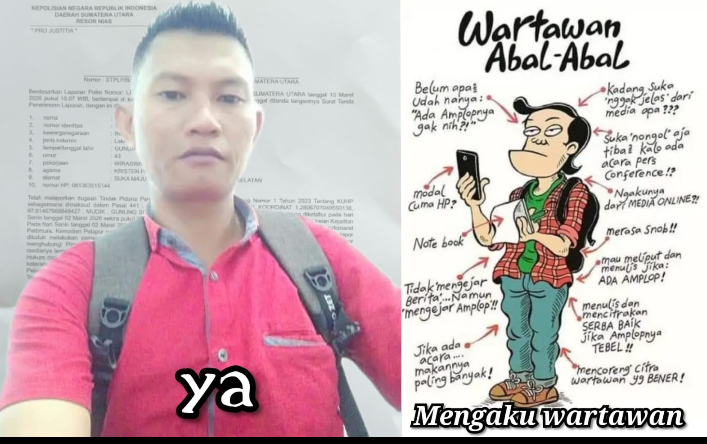 Menyikapi penyalahgunaan identitas ID Card wartawan Suarainvestigasi.com untuk melakukan pemerasan yang dilakukan oleh 3 (tiga) orang pelaku. YA tidak terima karena di kaitkan telah melakukan pemerasan kepada (S) mengambil langkah membuat Laporan Polisi di Polres Nias, Selasa (10/03/2026).