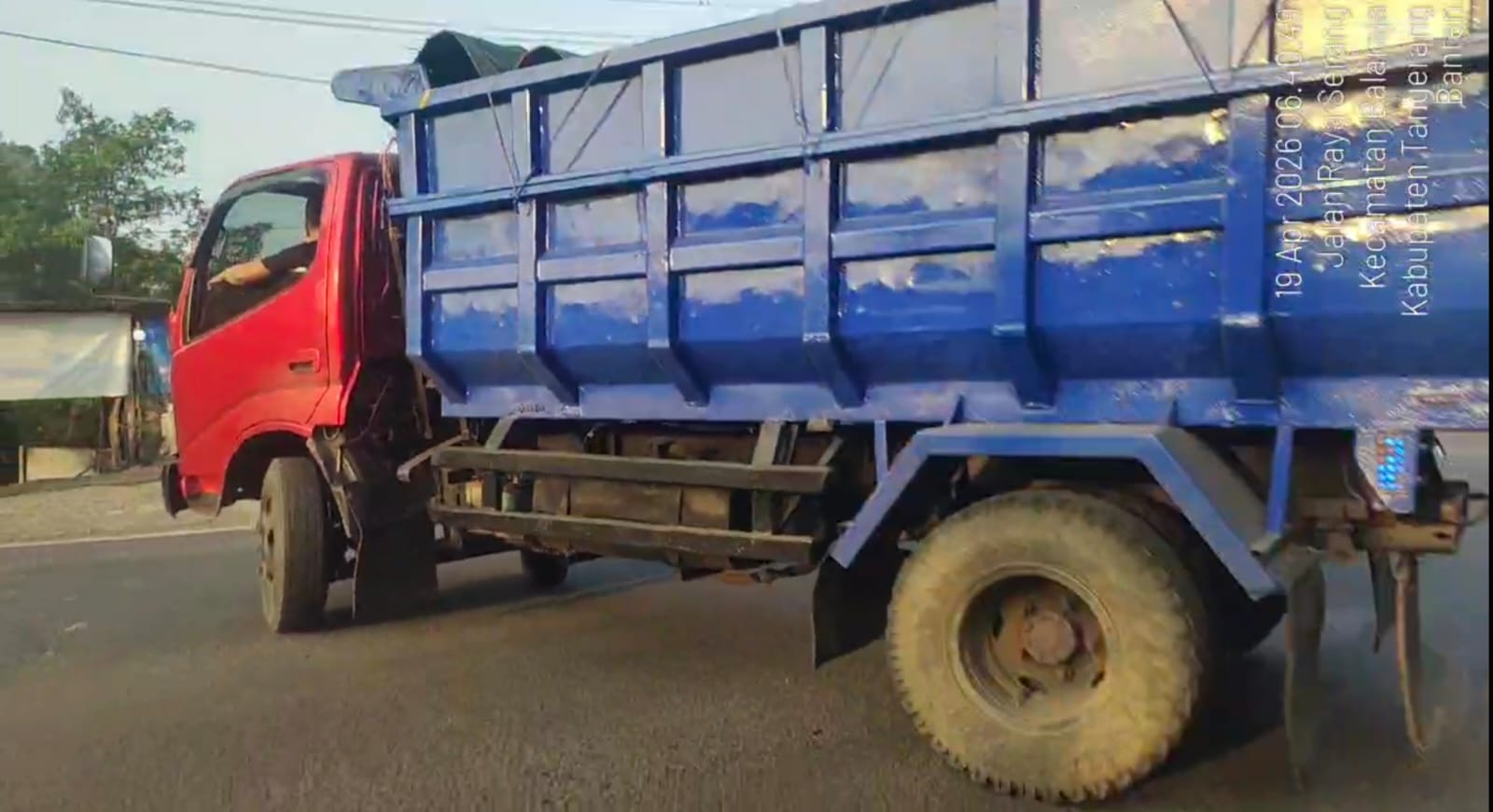 Satu unit truk berwarna merah dengan bak biru terpantau melakukan pengisian solar secara berulang di sejumlah SPBU, dengan pola pergerakan dari wilayah Serang hingga Tangerang.